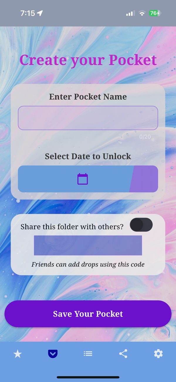 Give your Pocket a name that fits its purpose — like “Wedding Day,” “Holiday Memories,” or “Future Me.” This name helps you find and open it easily later.