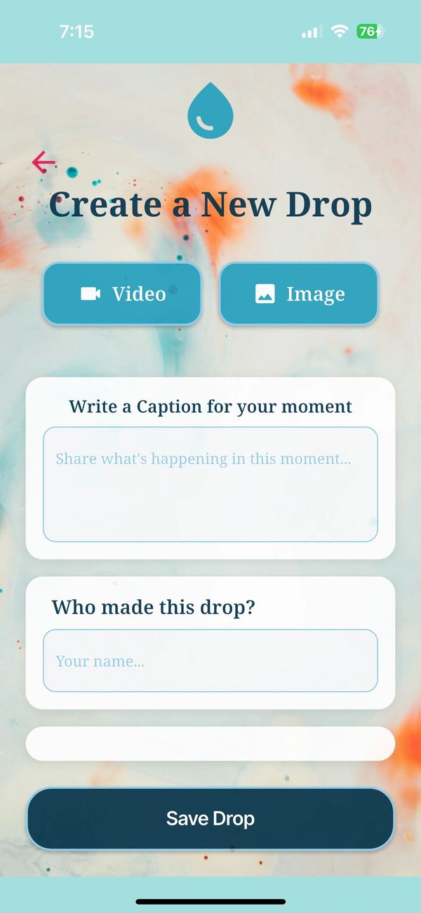 Want to add a new memory? Just open your folder and tap Create Drop — you’ll be taken straight to the page where you can add your photo, video, or message.